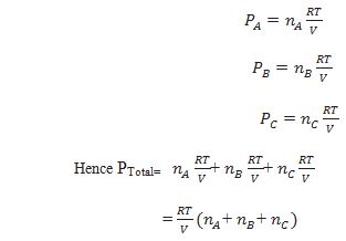 Let at the temperature T, three gases A,B and C enclosed in the volume V, exert partial pressure pA, pB and pC respectively. then,