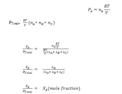 Waht is the relation between partial pressure mole fraction, total pressure and partial pressure.