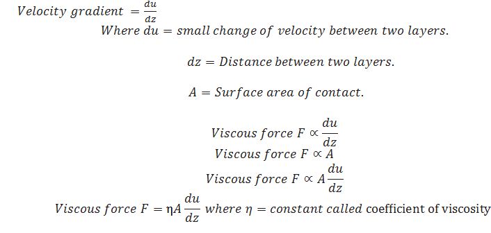 Viscosity coefficient is the viscous force when velocity gradient is unity and the area of contact is also unity.