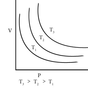 Each curve corresponds to a different constant temperature in pressure, p vs. Volume, v is called isotherm.