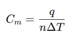 ΔT=qmc\Delta T = \frac{q}{mc}