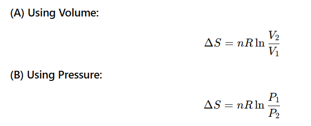 ALL FORMULAS OF ENTROPY CHANGE (ΔS)