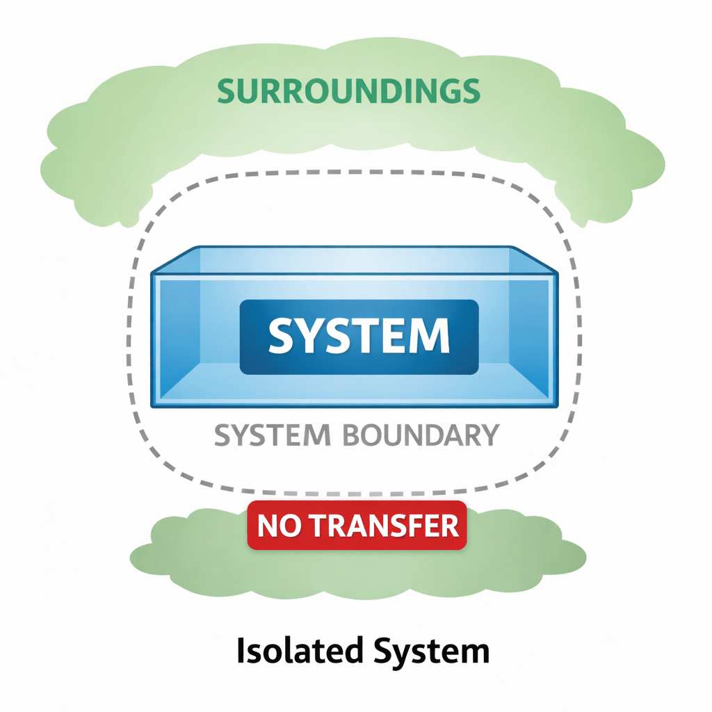 The type of system in which neither matter nor energy is exchanged between system and surroundings.