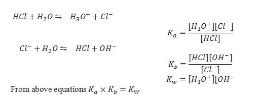 Relation between Ka and Kb for conjugate acid base pair.