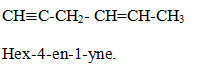 Parent name is Alk-position of double bond-en-position of triple bond-yne.