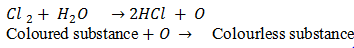 Ans.Due to formation of nascent oxygen Cl2 is powerful bleaching agent.The bleaching action of Chlorine is permanent because it involves the process of oxidation.
