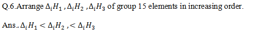 Q .5. The ionisation enthalpy of the group 15 elements is much greater than that of group 14 elements in the corresponding periods Why?