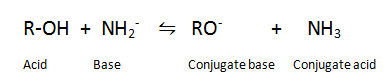 Q.8.Give a reaction which shows alcohols are Bronsted acid.