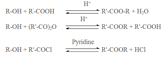 Esterification of alcohol using carboxylic acid,anhydride,acid halide