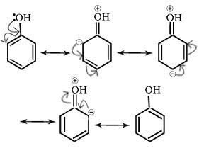 Q.18.–OH present at benzene ring in phenol is activating group and ortho and para directing why?
