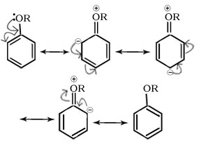Q.26.The alkoxy group (-OR) is ortho ,para directing and activates the aromatic ring towards electrophilic substitution why.