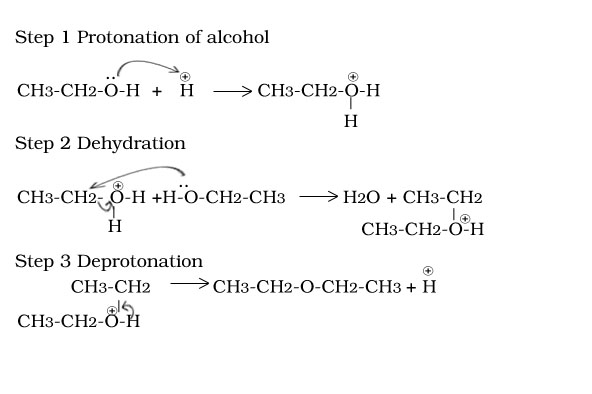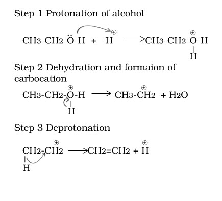 Acid catalysed Dehydration of primary alcohol, Secondary alcohol,Tertiary alcohol