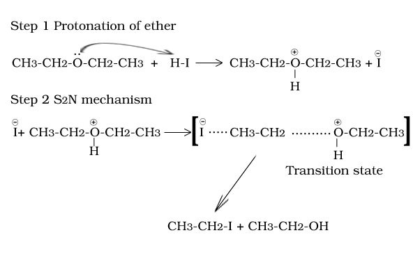 Reaction of ethoxy ethane with HI