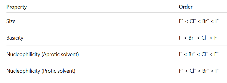 Example (Halide ions) :F>Cl>Br>IF^- > Cl^- > Br^- > I^-