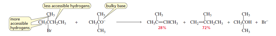 When a bulky base is used, it removes the most accessible hydrogen instead of the one predicted by Zaitsev’s rule.