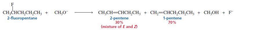 When the leaving group is F⁻, elimination often gives the less substituted alkene instead of the Zaitsev product.