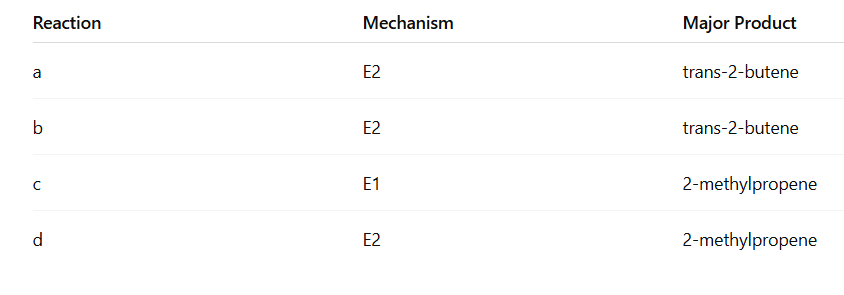 • Major product: 2‑Butene (especially trans-2-butene, most stable)