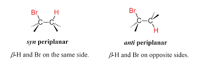 The β-hydrogen and leaving group must be anti-periplanar (180° apart).