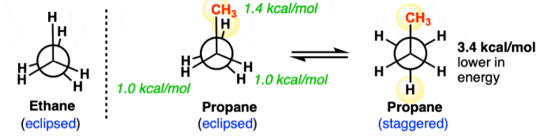 Hence, eclipsed propane is slightly more unstable than ethane eclipsed