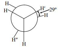 15. In the following skew conformation of ethane, H’–C–C–H” dihedral angle is :