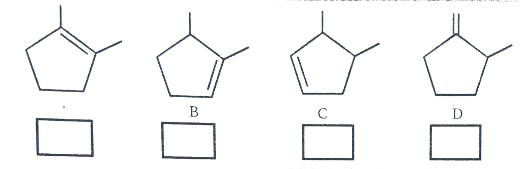 1. Arrange the following alkenes in order of their stability