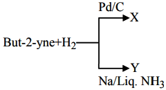2. But-2-yne and hydrogen (one mole each) are separately treated with (i) P d / C and (ii) N a / liq. N H 3 to give the products X and Y respectively