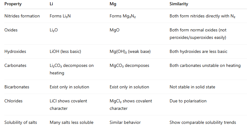 Diagonal relationship is said to exist between certain pairs of diagonally adjacent elements in the second and the third period of the periodic table