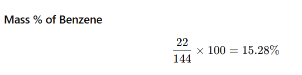 1.1 Calculate the mass percentage of benzene (C6H6) and carbon tetrachloride (CCl4) if 22 g of benzene is dissolved in 122 g of carbon tetrachloride.