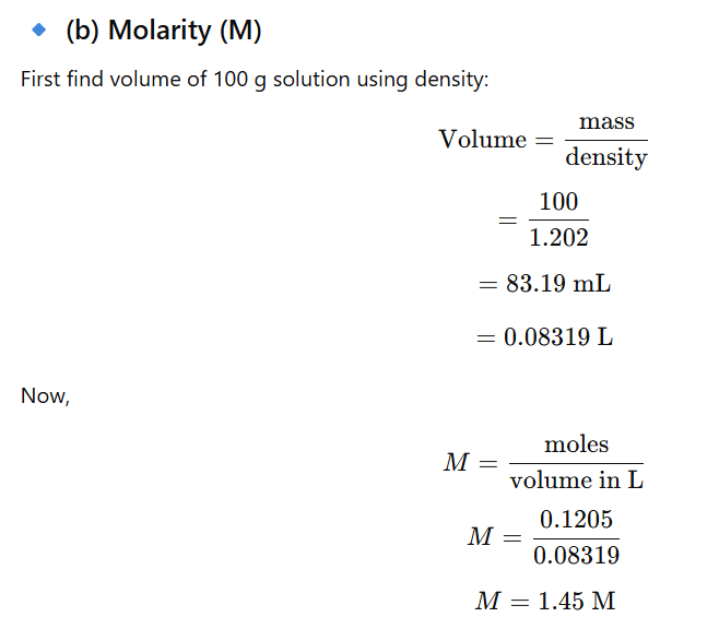 (i) Mole fraction (ii) Molality (iii) Molarity (iv) Mass percentage