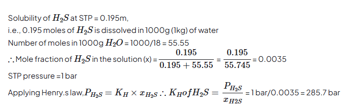 1.6 H2S, a toxic gas with rotten egg like smell, is used for the qualitative analysis. If the solubility of H2S in water at STP is 0.195 m, calculate Henry’s law constant.