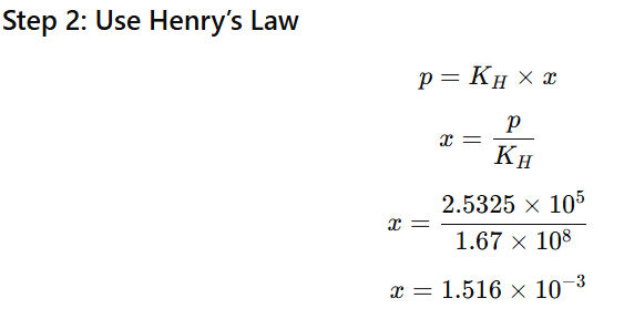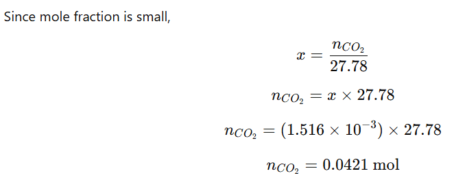 1.7 Henry’s law constant for CO2 in water is 1.67×108 Pa at 298 K. Calculate