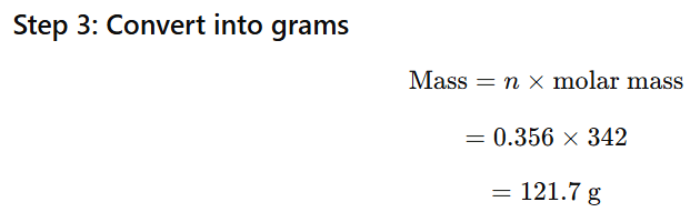 Molar mass of sucrose (C₁₂H₂₂O₁₁) = 342 g/mol