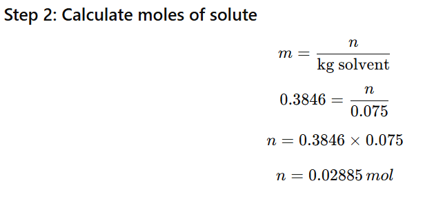 Mass of solvent (acetic acid) = 75 g = 0.075 kg