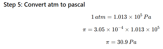1.12 Calculate the osmotic pressure in pascals exerted by a solution prepared by dissolving 1.0 g of polymer of molar mass 185,000 in 450 mL of water at 37°C