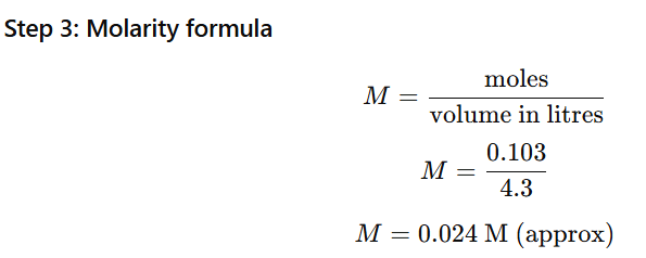 Co(NO3)2. 6H2O in 4.3 L of solution (b) 30 mL of 0.5 M H2SO4 diluted to