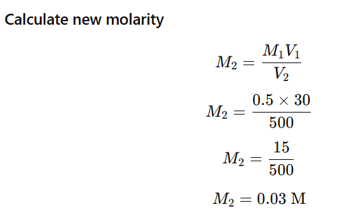 b) 30 mL of 0.5 M H₂SO₄ diluted to 500 mL