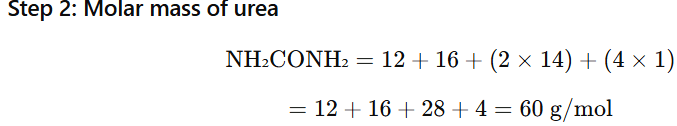 1.4 Calculate the mass of urea (NH2CONH2) required in making 2.5 kg of